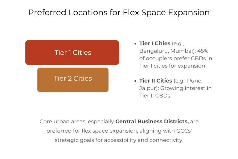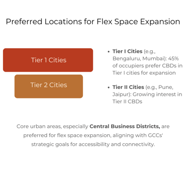 As companies increasingly commit to longer lease periods, with the average commitment for flex spaces expected to rise to nearly three years, the landscape of office occupancy continues to evolve. Core urban areas remain the preferred locations for portfolio expansion, with about 45% of surveyed occupiers favoring flex spaces in central business districts of tier I and II cities.